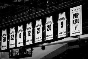 馬刺主場上空拉起旗幟致敬波波維奇 標(biāo)有1390的歷史第一勝場
