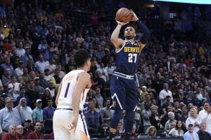 賈馬爾-穆雷表現(xiàn)全面,打了31分鐘17投8中,三分8中3、罰球4中4拿全隊(duì)最高23分外加6籃板5助攻1搶斷,正負(fù)值+15。此役過后,穆雷對(duì)陣太陽(yáng)的戰(zhàn)績(jī)來到20勝5負(fù),在對(duì)陣太陽(yáng)至少25次的682名球員中,勝率最高。