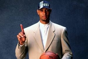 1997-98賽季,蒂姆-鄧肯作為新秀場(chǎng)均貢獻(xiàn)21.1分、11.9個(gè)籃板、2.7次助攻和2.5次蓋帽,投籃命中率達(dá)到54.9%,包攬最佳新秀+最佳陣容一陣+全明星。