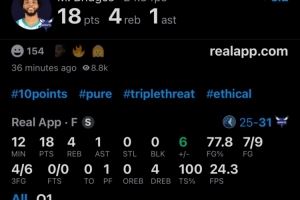 邁爾斯-布里奇斯,首節(jié)出場(chǎng)12分鐘,9投7中,三分6中4,拿到18分4籃板1助攻。