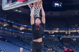 今天有機(jī)會嗎?楊瀚森賽前熱身秀各種扣籃 三分球也信手拈來