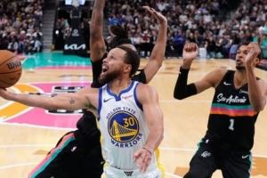 ——卡斯?fàn)柗啦涣藥?kù)里,瓦塞爾粗疏,文班亞馬內(nèi)線(xiàn)外線(xiàn)兩難。庫(kù)里8分半爆了22分。