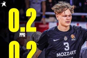 體育資訊11月17日訊 明年的熱門新秀穆里寧截止目前為止,在歐籃聯(lián)只出場(chǎng)4次,場(chǎng)均出場(chǎng)時(shí)間僅為1分55秒,而他的場(chǎng)均數(shù)據(jù)可以忽略不計(jì),4場(chǎng)比賽合計(jì)就得到1分,場(chǎng)均為0.25分,也沒有籃板、助攻進(jìn)賬。