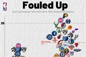 尺度變了?本賽季各隊(duì)場(chǎng)均罰球22.4次 上賽季僅為19.1次