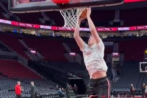 有望獲更多時(shí)間!楊瀚森賽前熱身 持球&空接暴扣 側(cè)翼三分6中3