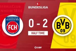 上半場(chǎng)補(bǔ)時(shí)6分鐘,海登海姆0-2多特。