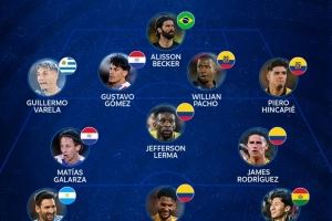 后衛(wèi):瓦雷拉(烏拉圭)、古斯塔沃-戈麥斯(巴拉圭)、帕喬(厄瓜多爾)、因卡皮耶(厄瓜多爾)