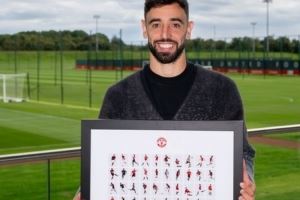 百球里程碑紀(jì)念!B費(fèi)獲曼聯(lián)官方贈(zèng)送的100球紀(jì)念框