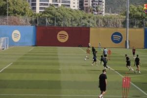 巴薩對陣奧維耶多賽前最后一練,萊萬帥氣凌空側鉤破門
