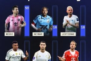 SofaScore數(shù)據(jù)庫球員10分次數(shù)排名:梅西50次遙遙領(lǐng)先,C羅13次