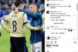 佩德里曬合照致敬卡索拉:天才,能把你的球衣給我嗎?