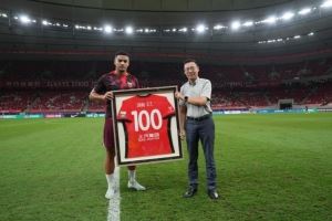 在亞冠首輪中,蔣光太達成代表俱樂部出戰(zhàn)各項賽事100場里程碑