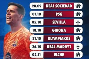 這也意味著在未來的近2個月內(nèi),巴薩的另一位門將——35歲的什琴斯尼將再次為巴薩首發(fā)出場。