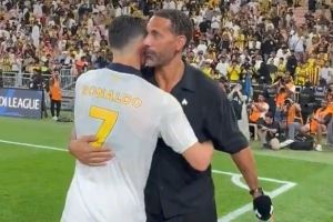 C羅的前曼聯(lián)隊(duì)友費(fèi)迪南德也來到現(xiàn)場觀戰(zhàn),并和C羅擁抱寒暄。