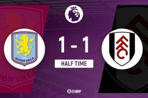 傷停補(bǔ)時2分鐘。上半場比賽結(jié)束,阿斯頓維拉1-1富勒姆。