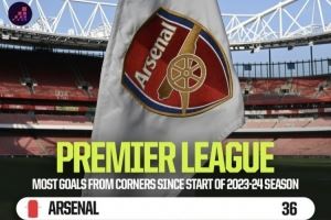 23-24賽季以來英超角球進(jìn)球最多:槍手36球斷崖領(lǐng)先,藍(lán)軍21球第2