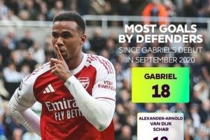 最強帶刀后衛(wèi)?自英超首秀以來,加布里埃爾打入18球冠絕英超后衛(wèi)