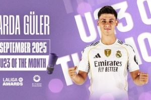 2球2助攻!官方:皇馬中場(chǎng)居勒爾當(dāng)選西甲9月份最佳U23球員