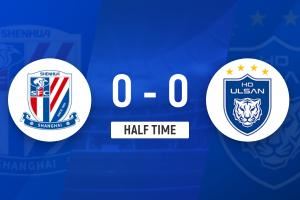 半場戰(zhàn)罷,申花暫0-0蔚山HD。