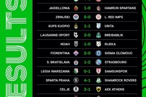 歐協(xié)聯(lián)首輪比賽結(jié)果: