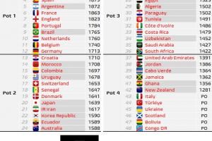 其中德國升至一檔,克羅地亞跌至二檔,澳大利亞升至二檔,首進世界杯的佛得角在四檔。