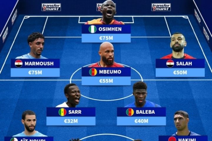 前鋒:奧斯梅恩(7500萬歐)、馬爾穆什(7500萬歐)、姆伯莫(5500萬歐)、薩拉赫(5000萬歐)