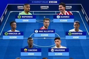 總身價(jià)9.55億歐!南美足聯(lián)最貴陣:維尼修斯領(lǐng)銜,皇馬3人紅軍2人