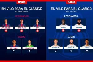 10人傷缺?皇馬巴薩缺席月底德比人員:巴薩3傷2疑,皇馬2傷3疑