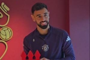 體育資訊10月18日訊 B費(fèi)此前當(dāng)選曼聯(lián)9月最佳球員,他于本周五在卡靈頓訓(xùn)練基地領(lǐng)取了該獎(jiǎng)項(xiàng)。