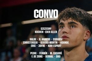 體育資訊10月18日訊 北京時(shí)間今天22點(diǎn)15分,巴薩將在西甲第9輪比賽中主場對陣赫羅納,巴薩公布了此役的球員名單,亞馬爾、拉什福德、費(fèi)爾明在列,萊萬、拉菲尼亞、費(fèi)蘭-托雷斯、奧爾莫、霍安-加西亞、加維缺席。