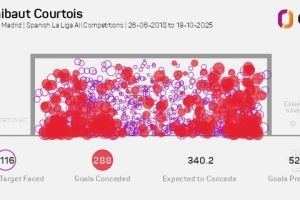 Opta指出,2018-2019賽季庫爾圖瓦加盟皇馬以來,預(yù)期失球340.2粒,而去掉烏龍球的實(shí)際失球?yàn)?88粒,這意味著庫爾圖瓦阻止了52.2粒失球,五大聯(lián)賽門將同期最多。