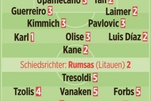 圖片報為拜仁球員本場評分:卡爾最高,凱恩、迪亞斯、萊默爾高分