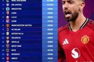 今年五大聯(lián)賽球隊(duì)身價(jià)跌幅榜:藥廠1.83億歐最多,曼聯(lián)米蘭八九位