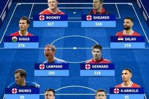 體育資訊10月25日訊 《轉(zhuǎn)會市場》列出了各個位置的英超歷史參與進(jìn)球最多陣容,薩拉赫、阿諾德連線右路。