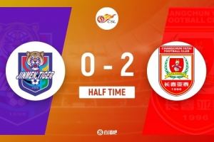 傷停補時4分鐘。上半場比賽結(jié)束,天津津門虎0-2長春亞泰。