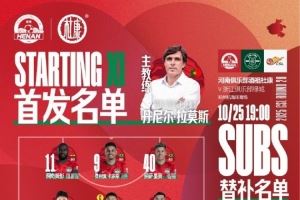 2025華潤飲料中超聯(lián)賽第28輪 河南VS浙江 首發(fā)及替補(bǔ)隊(duì)員名單