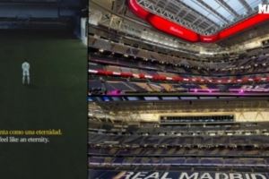 這則宣傳片拍攝于伯納烏球場可伸縮草坪的空間,一線隊(duì)球員貝林厄姆、迪亞斯、阿諾德和馬斯坦托諾出鏡,穿梭于充滿未來感和金屬質(zhì)感的黑暗場景中,象征著俱樂部神話起源于此,歷史在此搏動。視頻旁白采用了“神秘而雄心勃勃”的語言,如“偉大要求一切。它從不隱藏。它每天早晨都會奮起”,并結(jié)合新伯納烏可伸縮頂棚的畫面,配以“像太陽一樣不知疲倦”的臺詞。