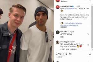 巴黎邊衛(wèi)阿什拉夫來到伯納烏,觀看了這場(chǎng)國家德比,見證老東家取勝,球迷社媒曬出與阿什拉夫的合照。