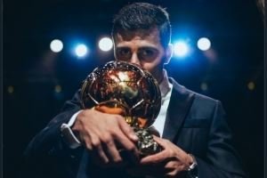 曼城曬出羅德里親吻金球獎的照片,并寫道:“去年今日,羅德里成為金球獎得主。”