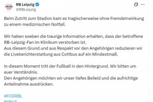萊比錫俱樂部確認(rèn),一名萊比錫球迷進(jìn)入球場(chǎng)時(shí)發(fā)生緊急醫(yī)療情況(與外部因素?zé)o關(guān)),被送往醫(yī)院,最終在醫(yī)院去世,萊比錫俱樂部社媒因此將這場(chǎng)比賽的直播報(bào)道減少到最低限度,并向家屬表示深切慰問。