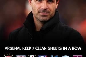 穩(wěn)!阿森納完成連續(xù)7場零封,同時打進14球