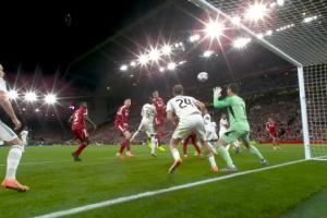 體育資訊11月05日訊 利物浦vs皇馬第47分鐘,范戴克近距離頭球,又被庫爾圖瓦神反應(yīng)擋出!