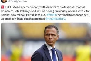 緊隨主帥佩雷拉步伐,奧恩斯坦:狼隊(duì)總監(jiān)多梅尼科-泰蒂離職