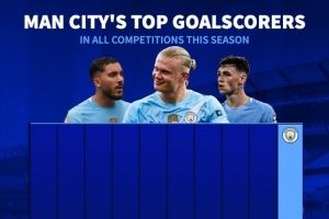 本賽季曼城隊(duì)內(nèi)射手榜:哈蘭德18球居首,其他球員合計(jì)進(jìn)15球