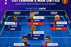 德轉(zhuǎn)票選熱刺+曼聯(lián)陣容:B費(fèi)、舍什科、西蒙斯在列,主帥阿莫林