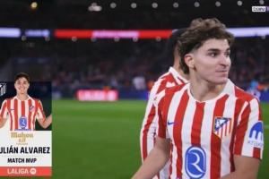 0球0助攻但送出6關(guān)鍵傳球!西甲官方:阿爾瓦雷斯當(dāng)選本場MVP