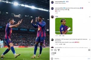 拉什福德社媒曬同萊萬慶祝照:重要的客場(chǎng)3分,我們繼續(xù)努力