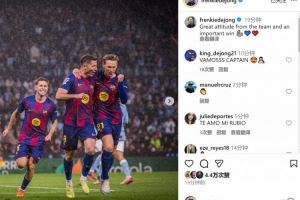 染紅離場!德容社媒慶祝取勝:球隊(duì)展現(xiàn)很棒的態(tài)度,收獲重要勝利