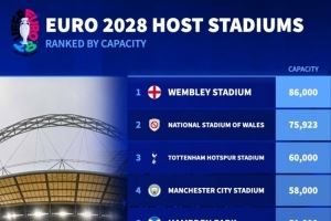 2028年歐洲杯球場(chǎng)容量排名:溫布利8.6萬人居首,熱刺球場(chǎng)6萬人