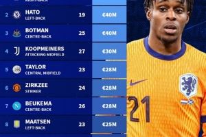 落選本期荷蘭國(guó)家隊(duì)球員身價(jià)榜:弗林蓬4500萬(wàn)歐居首,哈托次之